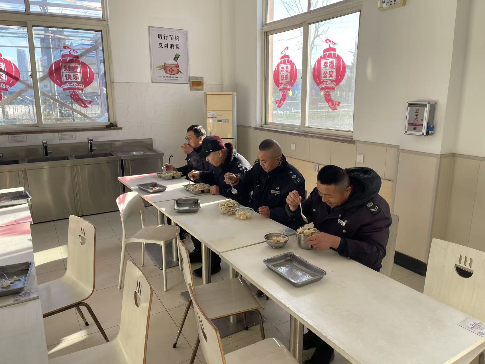 清晨時分,各公交場站食堂已一片忙碌。工作人員提前備好食材、餃子逐一下鍋,待餃子飽滿鮮香出鍋后,讓駕駛員們第一時間品嘗。食堂內,幾張餐桌整齊擺放,駕駛員們輪流來到食堂,接過工作人員遞上的熱餃子,圍坐在一起品嘗,熱氣氤氳中滿是歡聲笑語。“今年冬至都在崗,不僅能吃到熱餃子,還能和同事們在食堂聚一聚,心里特別暖。”有著8年駕齡的李師傅坦言,崗位特殊性讓他難與家人團圓,但公司的這份關懷和同事間的陪伴,讓他倍感親切。